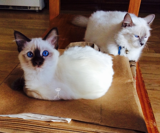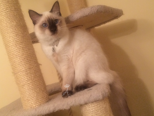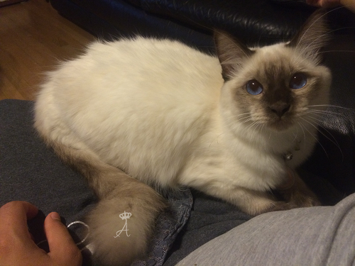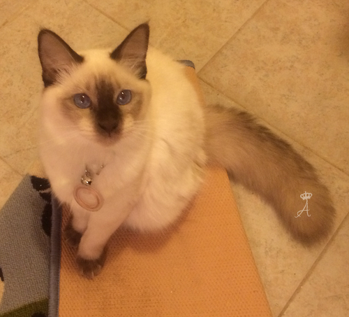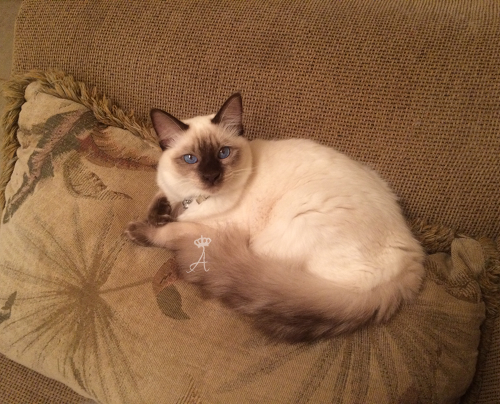 She as well has a sweet personality in that she loves to be petted in our laps. She is more of a lap cat in comparison to her sister Princess, who is more of a shoulder cat.