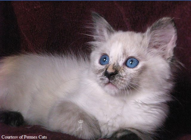 They are completely white in color, and they carry a Siamese color point genetically beneath its white coat. This means that under the white coat, there's either a seal, blue, chocolate or lilac pointed Siamese or Balinese cat; genetically speaking of course! Because of this, here at Azureys Cats we like to describe them as " Ivory points " because they are "white pointed" cats concealing their true pointed colors.