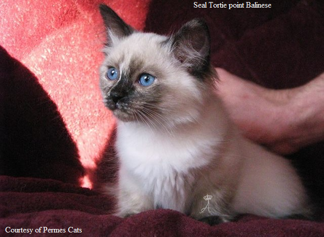Tortie points are an acquired taste to some, but they have much increased in popularity as the “other” type of point available to the Siamese/Balinese pointed colors. I have seen very beautiful Tortie point Balinese cats and they are rarity to see.