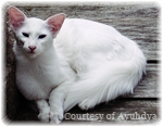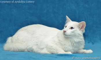 If a White long-haired cat with blue eyes is not genetically coded as cs/cs and its pedigree does not show the first Foreign White Siamese cat (Scintilla Ching Jen) produced, then it is not a real Foreign White Balinese cat, Period. This cat will most likely be a mixed breed cat out of a dominant white (W) cat, Khao Manee breed cross (Siamese look) or White Oriental Long-hair (W 61).