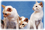 A white Oriental breed cat with eyes of blue (W 61), green (W64) or odd-eyes (W63), or a breeding cross of Siamese to Khao Mannee or other white colored cat breed is NOT considered a real Foreign White (W 67) Siamese or Balinese cat. The initial breeding of the Foreign White Siamese was made possible many years ago in the 1960's by crossing a white British Short hair cat to a Siamese. That interbreeding produced the first White Siamese cats that were later used to make the foundation for the Foreign White. Those foundation cats were then only bred to Siamese blood lines to concentrate their genes and breed standard (genetics, appearance and personality). This was made possible by breeding strictly Siamese to Siamese over many decades, which is why they are considered pure Siamese cats due to their extensive lineage. For this reason deafness is almost non-existent in the Foreign White cat, due to its Siamese genetics.